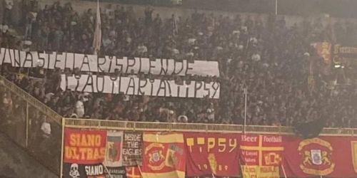 Lo striscione nella curva del Catanzaro per ricordare la tifosa del Cosenza Ilaria Mirabelli