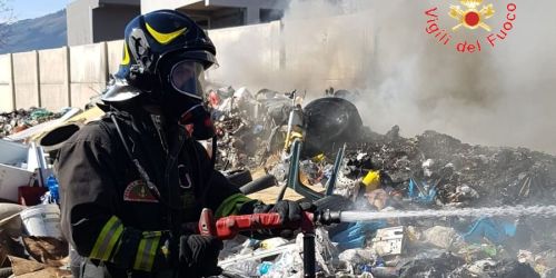 L’ennesimo rogo ha interessato cataste di rifiuti di vario genere. Fiamme domate dai vigili del fuoco