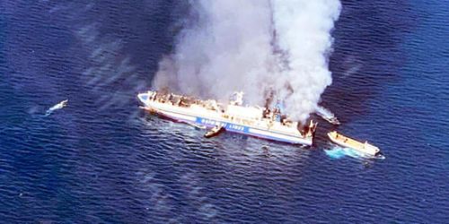 Nave in fiamme a Corfù, trovato passeggero carbonizzato in un camion