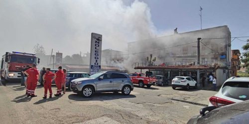 Operazioni dei vigili del fuoco ancora in corso. Apprensione per appartamenti e attività adiacenti alla zona del rogo