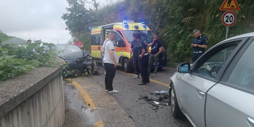 Lo scontro è avvenuto tra due utilitarie a causa del fondo stradale reso scivoloso dalla pioggia