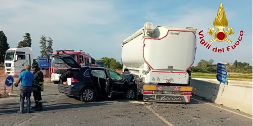 Coinvolti nel sinistro un mezzo pesante e un veicolo leggero. La viabilità è temporaneamente deviata sulla rete locale