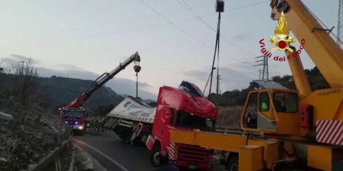 Tir si ribalta tra Catanzaro e Lamezia, necessario intervento di un’autogru – VIDEO