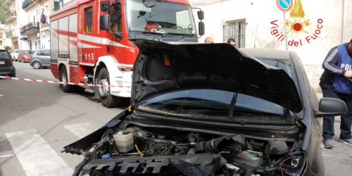 Intervento dei vigili del fuoco. Il mezzo ha perso il controllo andando a sbattere con un palo dell’illuminazione pubblica