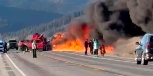 Il mezzo si è scontrato con un pick up ed entrambi hanno preso fuoco. Altri 8 feriti