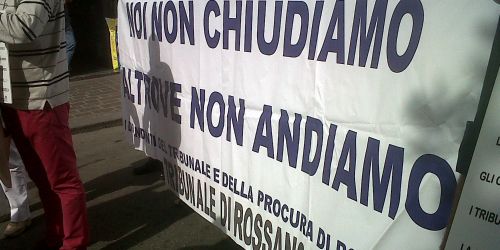 ROSSANO Un lenzuolo bianco listato a lutto con la scritta “Sei da salvare” è stato esposto davanti all`ingresso del Tribunale di Rossano che da sette…