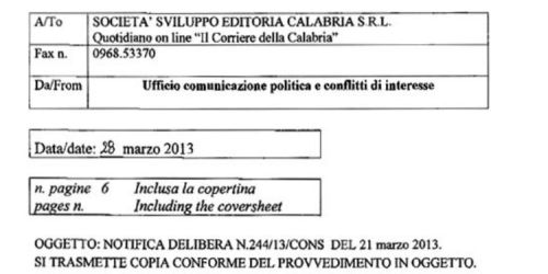 Per un errore tecnico sul sito del “Corriere della Calabria”, il 13 febbraio del 2013, è stato pubblicato un messaggio politico elettorale privo dell…