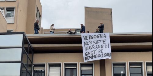 «Vergogna, non siete in grado di gestire una gara». I lavoratori della mensa tornano sul tetto del “Giannettasio”