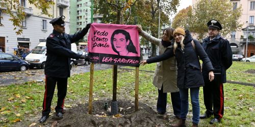 L’albero è stato piantato in piazza Prealpi dove la 35enne fu rapita per essere uccisa. Crescerà vicino alla panchina rossa sempre a lei dedicata