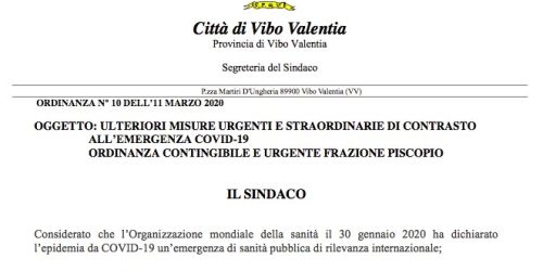 Vibo Valentia, ordinanza del sindaco: due frazioni "zona rossa"