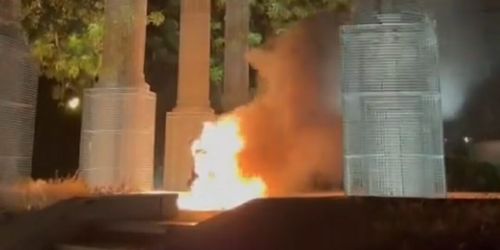 La moto si trovava nei pressi delle colonne che Tresoldi ha realizzato per la città. Falcomatà: «Dimostriamo di essere primi nella stortìa»