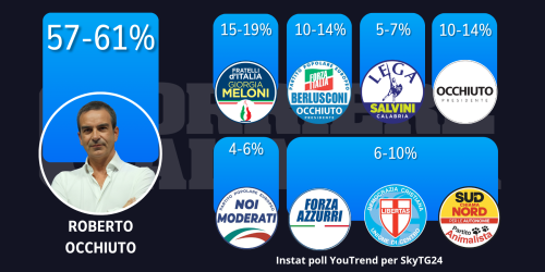 Proiezione Swg: Forza Italia la più votata, segue Occhiuto Presidente. Nel centrosinistra il Pd al 14,6%