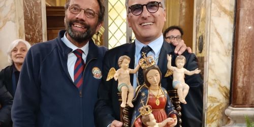 Il maestro Peppe Spadafora incorona la statua itinerante della Madonna delle Grazie