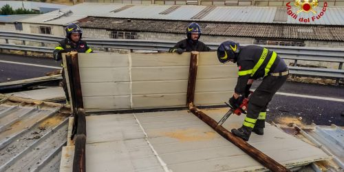 Nel Cosentino la tettoia di uno stabilimento è finita sulla carreggiata sud dell’autostrada A2. Sottopassi allagati e alberi caduti