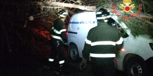 Maltempo, albero secolare cade sul furgone della ditta impegnata nei lavori sulla Ss280