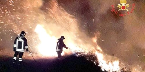 Nocera Terinese, vasto incendio alimentato dal vento, domato dai Vigili del Fuoco