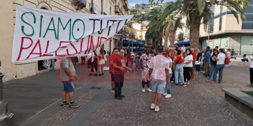 Lamezia blindata per l’arrivo dei leader del centrodestra. A pochi metri dal palco spuntano bandiere pro-Palestina
