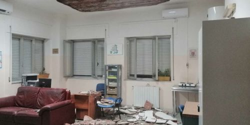 Mesoraca, crolla l'intonaco del soffitto nella stanza del 118 – FOTO