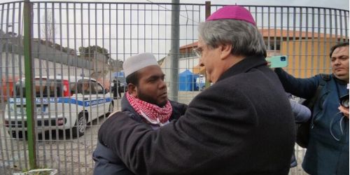 Monsignor Savino presente al momento della preghiera celebrata dall’imam Bashar che guida la comunità musulmana a Crotone