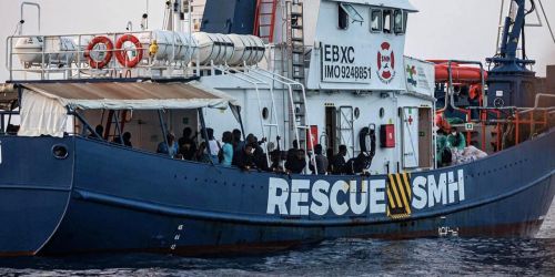 Operazione di salvataggio nel Mediterraneo della Sea-Eye 4. Una delle persone a bordo, una donna incinta, è stata evacuata a Lampedusa