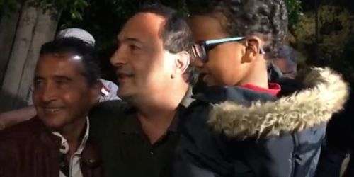 L’ex sindaco rientra nella “sua” città e riabbraccia il padre. Ad accoglierlo tanti compagni di lotta: «Sì papà, sono tornato, ora sto qua»