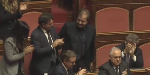 Il senatore di Forza Italia rientra a Palazzo Madama dopo la scomparsa del figlio. L’abbraccio dei parlamentari