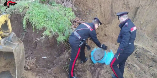 Oltre venti armi da fuoco, munizioni e droga sotterrati in bidoni metallici a due metri di profondità. Indagato il proprietario del terreno