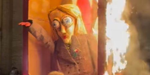 Brucia in piazza un fantoccio della premier Meloni – VIDEO