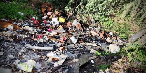 Abbandono sistematico di immondizia, tra cui plastiche, materiali edili, rifiuti solidi urbani e altri scarti