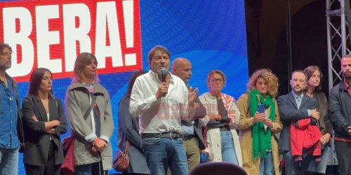 L’abbraccio a Sigfrido Ranucci: a Roma in piazza in difesa della libertà di stampa