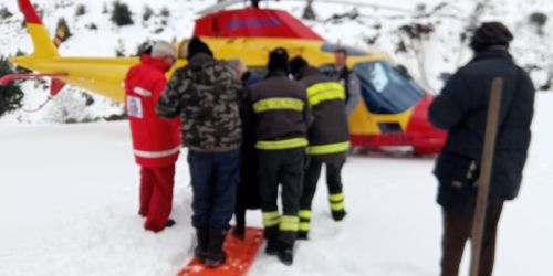 In azione squadre con Gatto delle nevi ed elicotteri. Recuperato un bovino precipitato in un dirupo