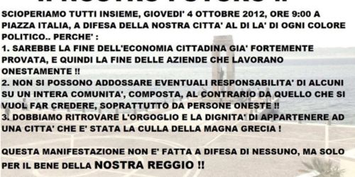 Si è svolta ieri pomeriggio 3 ottobre presso il salone dell’ istituto San Vincenzo dè Paoli l’assemblea degli aderenti al Movimento ReggioNonTace. In…