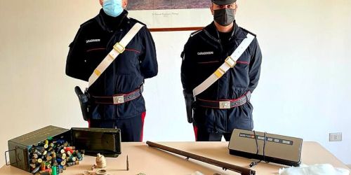 I carabinieri hanno sorpreso l’uomo che era in possesso anche di un fucile illegale e munizioni. È stato condotto in carcere