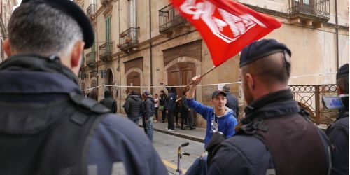 COSENZA Mentre il ministro Boschi parlava in un affollato auditorium del liceo classico, nel centro storico di Cosenza, fuori la protesta urlava il s…