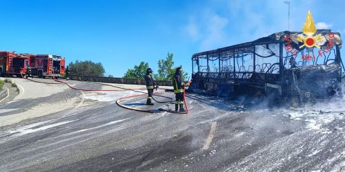 L’incendio si è sviluppato mentre il mezzo era in transito. Inutile il tentativo dell’autista di limitare i danni