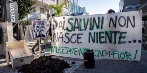 Accoglienza con letame davanti all’hotel che ospiterà il primo incontro dell’ex ministro. Cori e cartelli a Crotone. L’affondo del leader leghista co…
