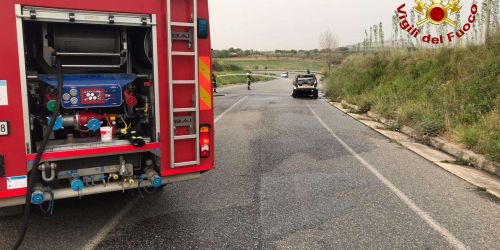 Intervento dei vigili del fuoco per un incendio a bordo di una vettura a gpl