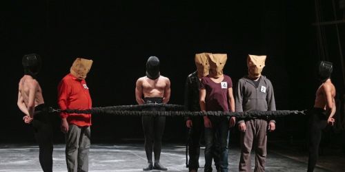 COSENZA A sipario chiuso, i rumori che provengono al di là del boccascena sembrano quelli di piedi che ritmicamente corrono. Dalle prime file della p…