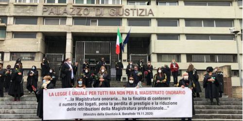 Manifestazione davanti al Tribunale. «Da vent’anni svolgiamo le funzioni giurisdizionali senza tutela. Negati i nostri diritti. È caporalato di Stato»