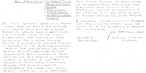 L’inedita lettera inviata da un detenuto a Sergio Cosmai