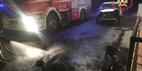 Incendio a Simeri Crichi, distrutti un'auto e due scooter