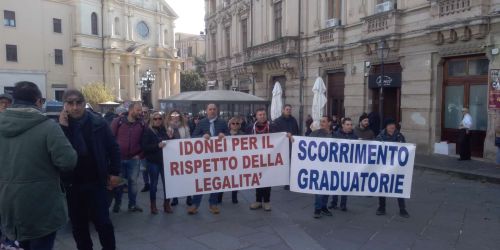 I vincitori delle selezioni protestano per la disparità di trattamento rispetto ai precari. La protesta davanti la Prefettura del capoluogo