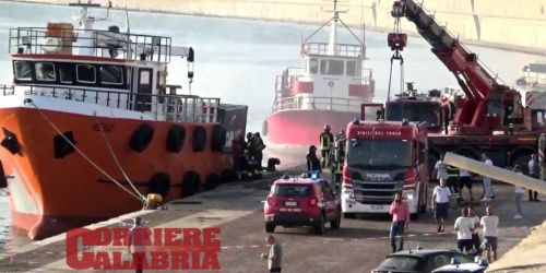 Soccorsi e angoscia dopo l’esplosione sul rimorchiatore che era in porto per riparazioni. Il sindaco Voce: «Ennesima tragedia sul lavoro»