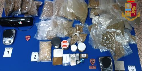 L’uomo nascondeva marjuana, cocaina, hashish. Trovate buste in cellophane e un bilancino di precisione