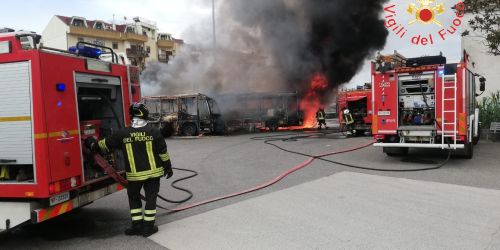 Distrutti da un incendio due autobus delle Ferrovie della Calabria – VIDEO