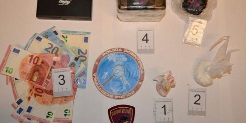 Nel corso della perquisizione sono stati rinvenuti dai poliziotti cocaina, cinque panetti di hashish e 210 euro
