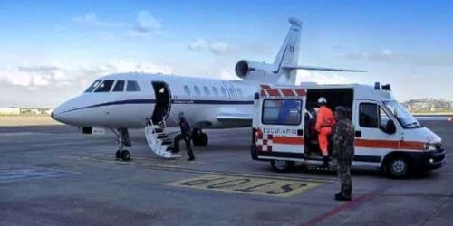 Il Falcon 50 dell’aeronautica militare ha portato i sanitari al Pugliese-Ciaccio per prelevare e trasferire gli organi all’ospedale romano