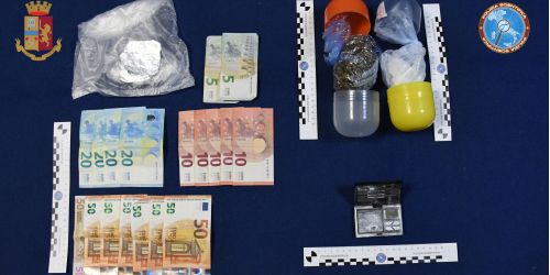 All’interno della sua abitazione sequestrati 50 grammi di cocaina e altrettanti di marijuana, 1 bilancino di precisione e 500 euro