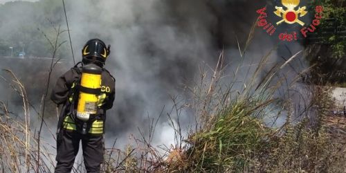 Incendio di rifiuti abbandonati in una discarica abusiva a Calderaio di Pianopoli: tempestivo l’intervento dei vigili del fuoco