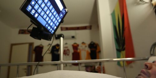 L’uomo è immobilizzato da 18 anni, comunica con un puntatore oculare